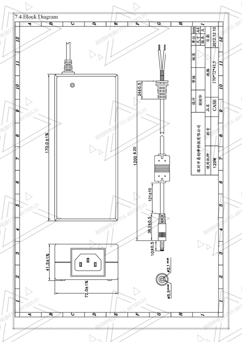 19V3.5A电源适配器规格书